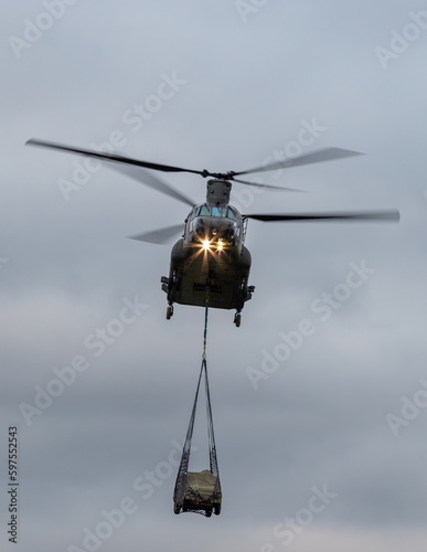 Chinook. Twin rotor heavy lift helicopter with underslung loads.