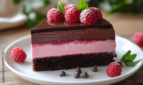 Chocolate and Raspberry Mousse Cake with Dark Chocolate Mirror Glaze