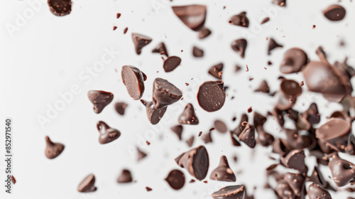 Chocolate Chip Morsels Falling on Dark Wooden Surface