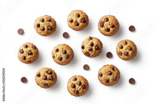 Chocolate chip muffins on white background. AI generated