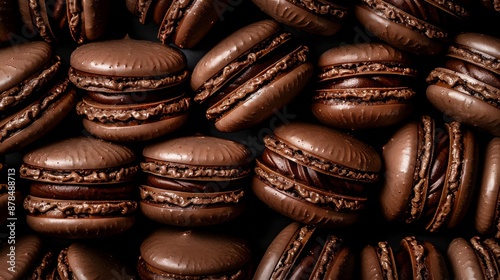 Chocolate Macaroons: Close-Up Pastry Shop - Top View Gastronomy Photo on Black Background