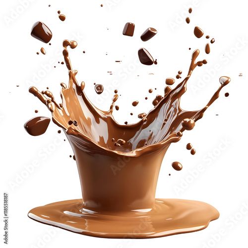 Chocolate Milk Splashing with Cubes Isolated on a Transparent Background.