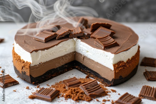 Chocolate mousse cake with chocolate pieces, rich and indulgent, perfect for dessert lovers, vibrant dessert photography, sweet and elegant treat