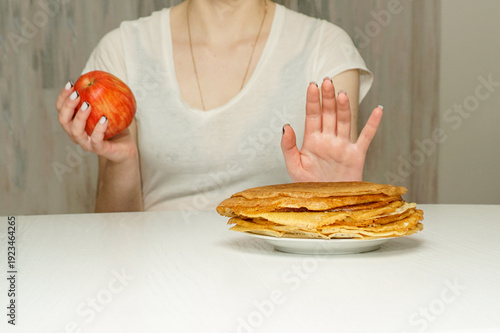 Choosing between fruit and cakes. Apples are preferred over pancakes.