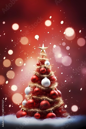 Chrismas decorations with snowflakes. Cute chrismas tree on a blurred background