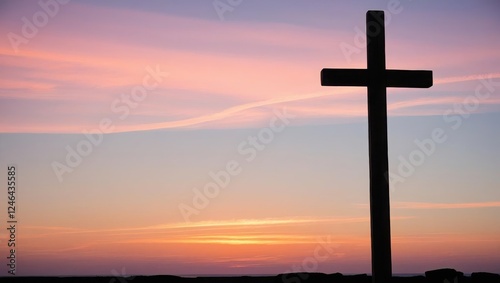 Christ prayer eternity. A silhouette of a cross against a vibrant sunset backdrop, symbolizing faith and hope.
