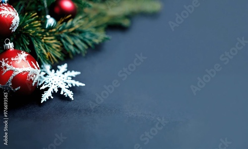 Christmas background border with bauble decorations, with copy space