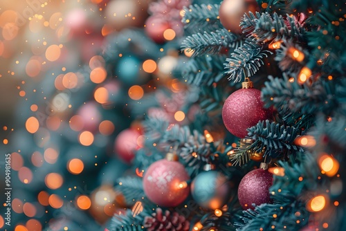 Christmas Holiday Celebration with Decorated Tree and Festive Lights - Perfect for Seasonal Cards and Posters