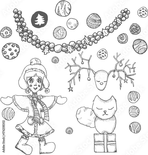 Christmas holiday elements and stickers