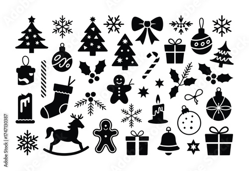 Christmas icon set collection with gifts trees snowflakes and decorations vector pack