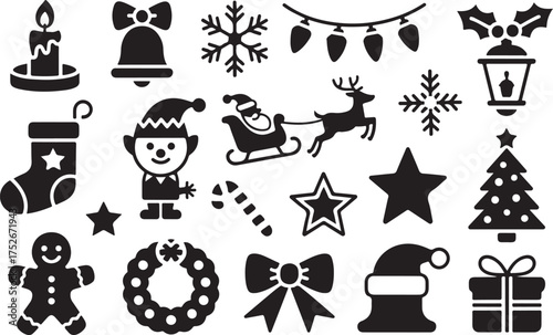 Christmas icon silhouette vector illustration, Christmas Icon Bundle, Christmas Icon