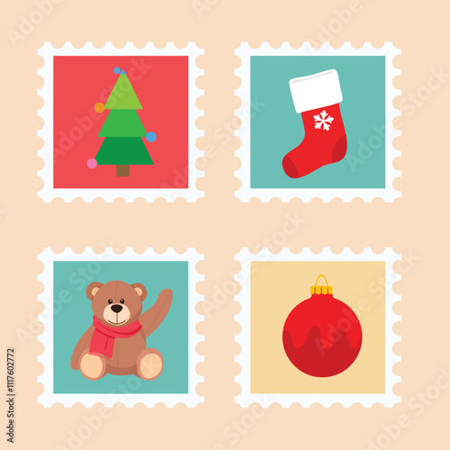 Christmas stamp collection. Merry Christmas postmarks
