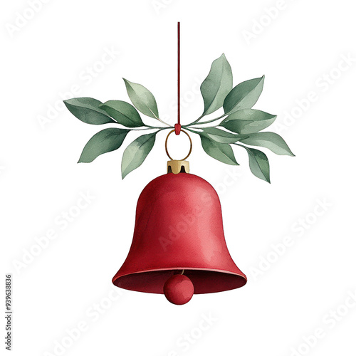Christmas theme. A charming red bell adorned with green leaves, perfect for festive decorations and holiday themes. transparent background watercolor style