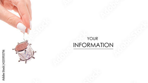 Christmas toys drum in the hand pattern on a white background isolation