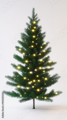 christmas tree decorated with lights white background isolated green evergreen holiday decoration 3d render