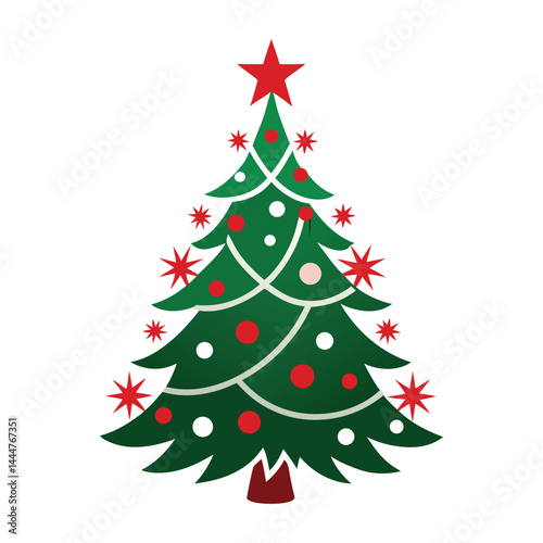 christmas, tree, holiday, decoration, christmas tree, fir, christmas, star, celebration, winter, ball, pine, gift, green, year, illustration, isolated, new, new year, season, present, vector, december, bow, festive