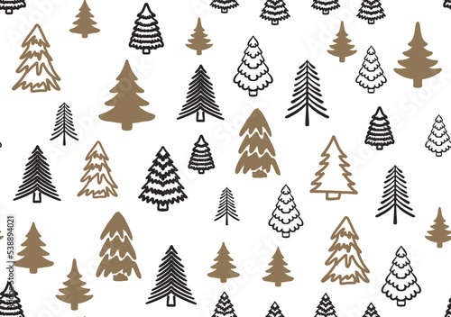 Christmas tree pattern, Hand drawn illustrations.