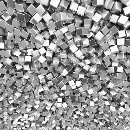 Chrome abstract heap of cubes backdrop. Contrast 3d rendering geometric polygons, as mirror wall. Interior room