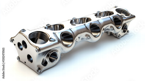 Chrome Engine Component: A detailed, high-angle shot captures a polished chrome engine component, revealing its intricate design, highlighting the precision and craftsmanship.