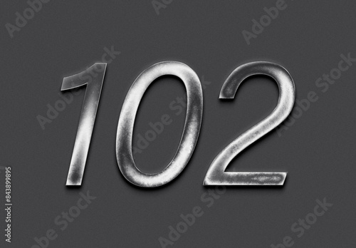 Chrome metal 3D number design of 102 on grey background.