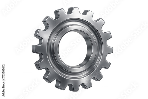 Chrome steel gear rotating on transparent background, perfect for industrial and mechanical concepts