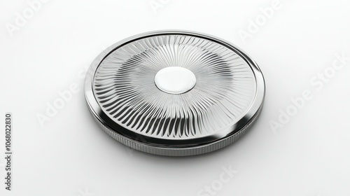 Chrome-finish 3D silver coin, displayed in top view on a white background, featuring a sleek, reflective surface.