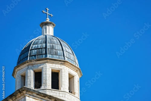 Church Dome with Cross Against Blue Sky