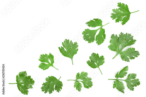 cilantro or coriander leaves isolated on white background with copy space for your text. Top view. Flat lay pattern
