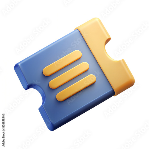 Cinema Paper Ticket 3D Rendering Cartoon Plastic Style Icon
