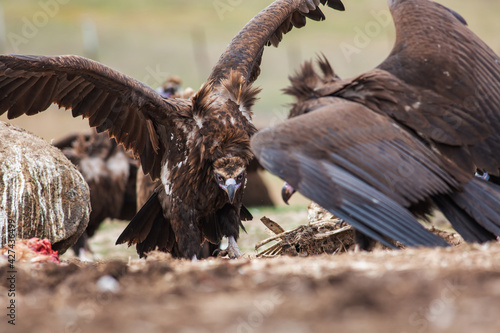 Cinereous Vulture, (Aegypius monachus) in its natural habitat. Wildlife.