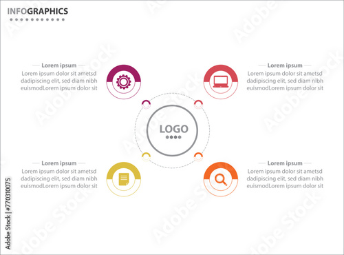 Circle infographic template with 4 options for presentations. Vector infographic design template. diagram, number options. Data visualization. Business concept with 4 steps, four process.