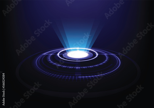 circle ring hologram and beam light technology abstract background vector