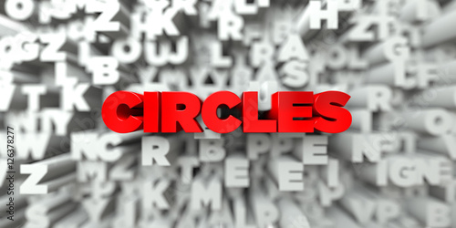 CIRCLES - Red text on typography background - 3D rendered royalty free stock image. This image can be used for an online website banner ad or a print postcard.
