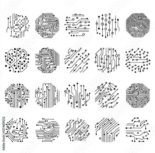 Circuit board circle frames, an abstract representation of digital round frames, incorporate hardware boards and electronic motherboard patterns, reflecting programming science and computer system