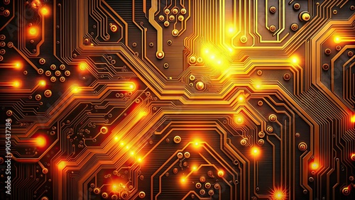 Circuit board with glowing orange lights, technology, electronics, innovation, hardware, motherboard