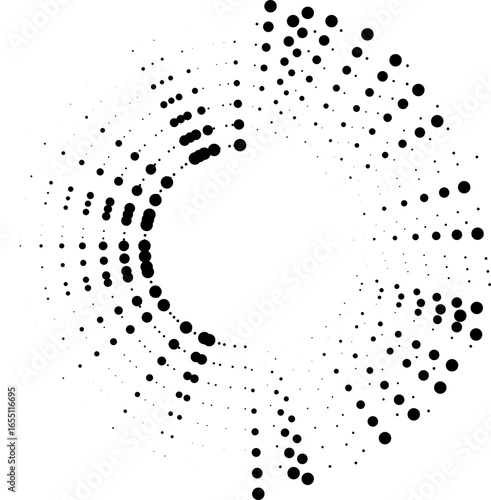 Circular dotted rays forming an irregular explosion with lines tapering toward the center.