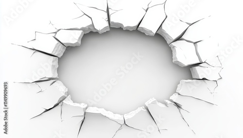 Circular hole in a cracked white surface.