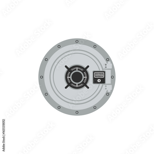 Circular metal vault door with a central locking mechanism and dial.