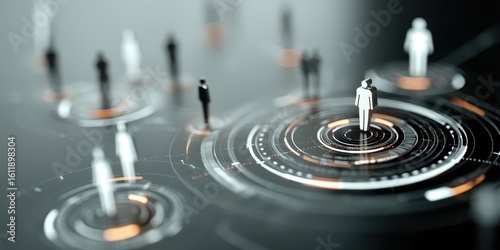 Circular network of avatars linked by lines showing digital recruitment channels and human resource connection