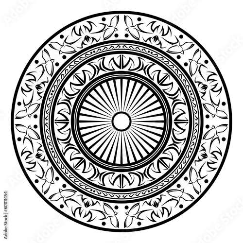 Circular pattern in the form of a mandala with swallow