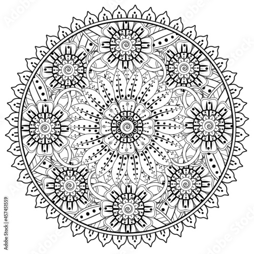 Circular pattern in the form of mandala with flower for henna, mehndi, tattoo, decoration.