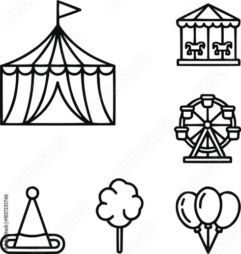 Circus Tent Outline Icons Carnival Flags, Striped Canopy, and Festival Fun