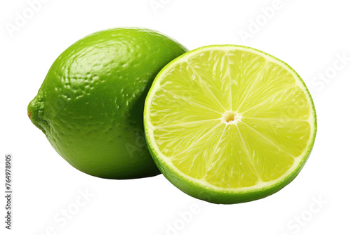Citrus Symphony: Vibrant Lime and Slice Dance on Pure White Stage.