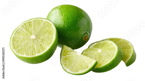 Citrus Zest: Fresh and vibrant green limes, whole and sliced, exuding a burst of zesty flavor and visual appeal, ready to add a touch of freshness to any culinary creation.