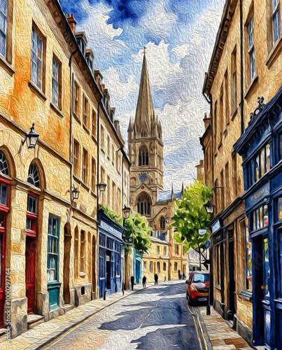 City Architecture. Oil painting. Printable pattern for wall decorations
