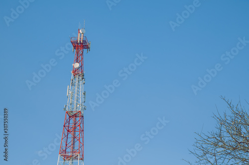 City Cesis, Latvia. 5G internet tower, mobile communications.