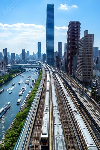 City Rail Tracks River Skyline.