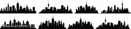 City silhouettes set, skyscraper pack of vector silhouette design, isolated background