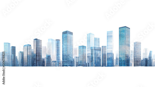 Cityscape: A modern and clean skyline showcases a cluster of tall, contemporary skyscrapers that forms an impressive urban silhouette, representing progress and innovation.
