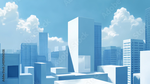 Cityscape and architecture, interior and exterior, modern and contemporary, minimalism and simplicity, blue and white. Minimalism. Illustration